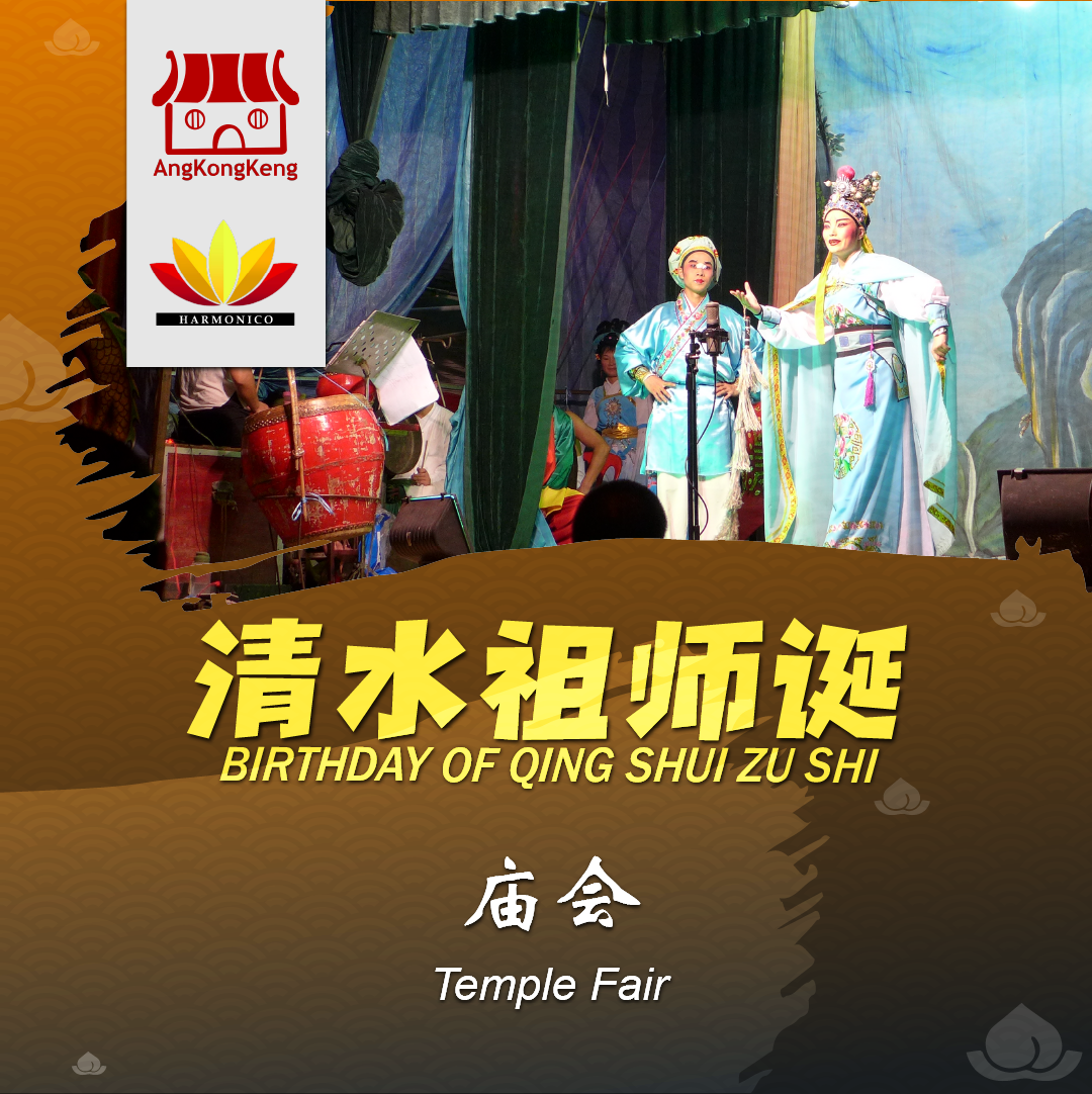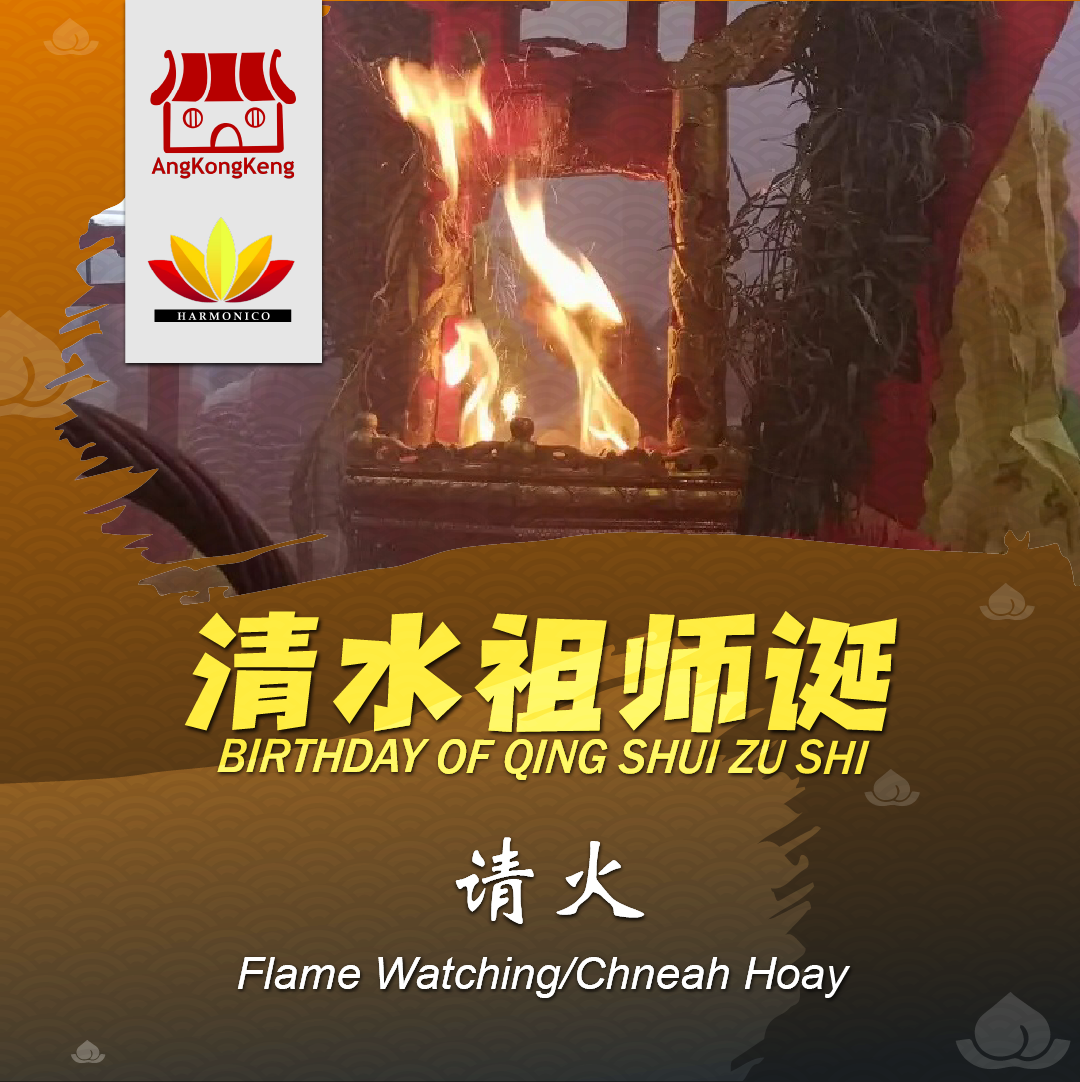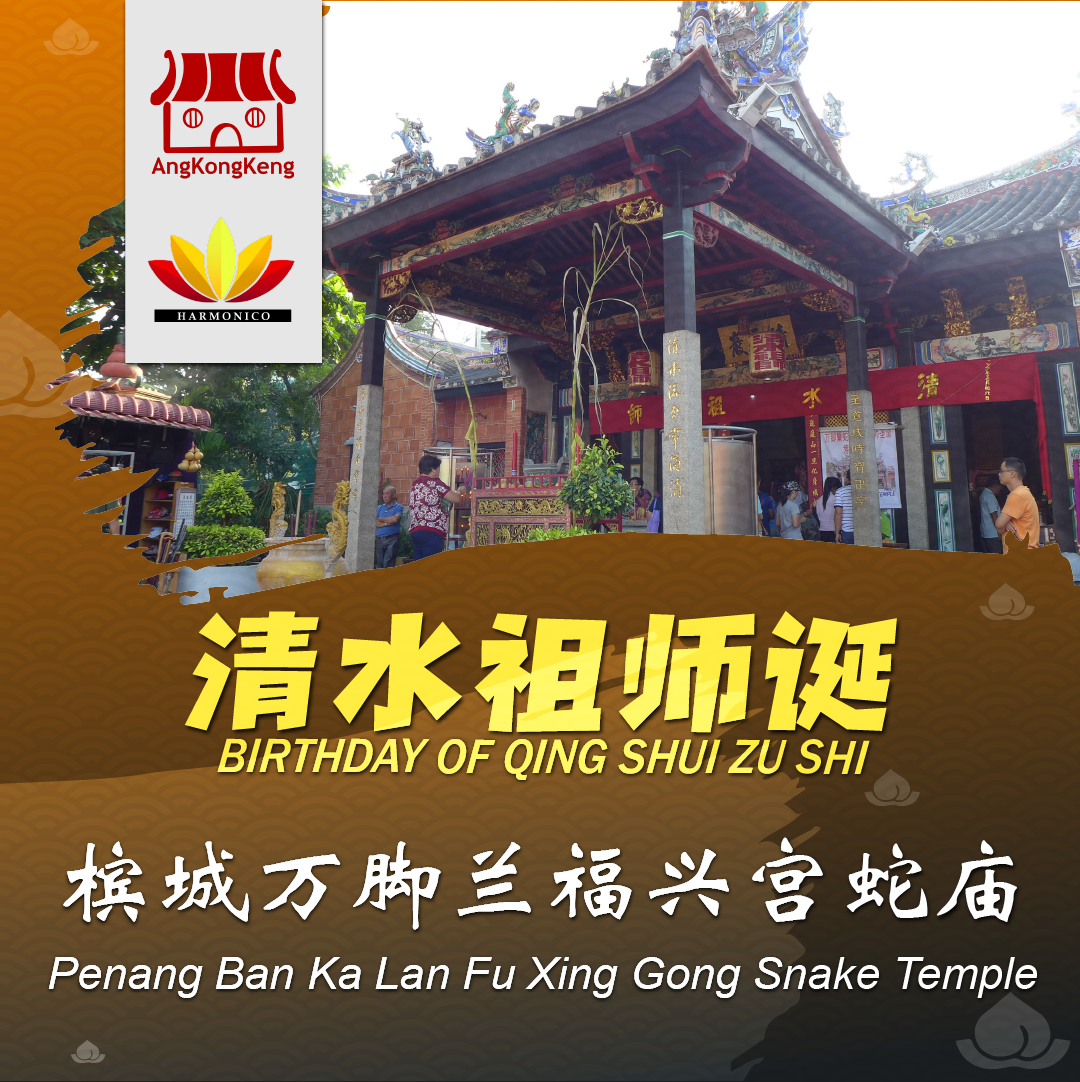 Qing Shui Zu Shi, also known as Chó͘-su-kong in Hokkien, was a Zen Buddhist monk during the Northern Song from An Xi County, Quanzhou. He was said to have supernatural powers that bringing rain to save people during drought, curing sickness with herbs and building bridges to ease villagers. In reverence, the villagers built shrines for him and hence became a famous Deity in Chinese folk religion. The Birthday of Qing Shui Zu Shi is on Chinese Lunar calendar: Month 1 Day 6, Month 6 Day 6 and Month 11 Day 6.