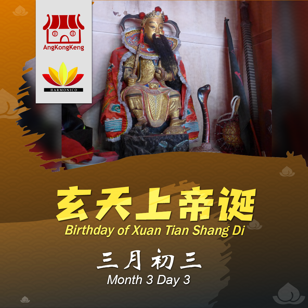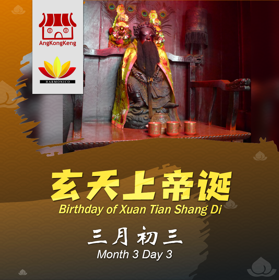 His birthday is celebrated on the third day of the third lunar month which is coincidently Shang Si festival, an auspicious day for blessings and to get rid of evils.